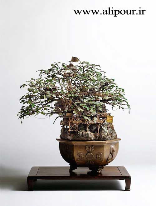 هنرمند ژاپنی Takanori Aibaخالق این معماری های مینیاتوری است. او با استفاده از درختان بونسای شهر ها و قلعه هایی کوچک و زیبا را در اطراف این درختان ساخته و آثاری رویایی و زیبا را خلق کرده است.