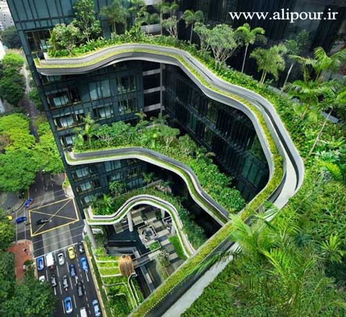 هتل پارك رويال به تازگي در سنگاپور به بهره برداري رسيده است. با گياهان بكار رفته در اين هتل ،و مصرف پايين انرژي آن ، اين هتل يك ساختمان كاملا سبز است. در اين هتل بيش از 15 هزار متر مربع فضاي سبز بكار رفته است. يك باغ مخصوص گياهان جنگل هاي باراني دارد و سبزيجات هتل از همين باغ ها تامين ميشود. در بيشتر بخش هاي اين هتل از انرژي خورشيدي استفاده ميگردد و براي روشنايي آن تا حد امكان از نور بيرون استفاده ميشود. به همين دليل مصرف انرژي كل اين هتل به شدت كم شده است.با همه اينها ظاهري مدرن و زيبا يكي از خصوصيات انكار نشدني اين هتل لوكس به شمار ميآيد.