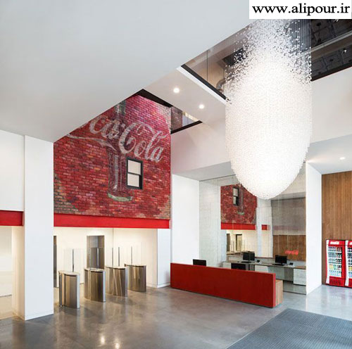 دفتر جدید شرکت کوکاکولا در لندن، توسط معمار Morey Smith ساخته شده است.دکوراسیون داخلی این دفتر پر از رنگ ها و بطری های ریز و درشت است که نمای جالبی به آن می دهد و بازدید از آن خالی از لطف نیست.
