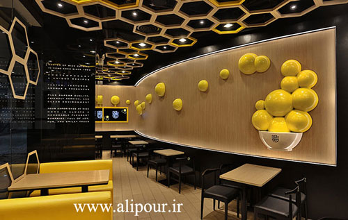 دکوراسیون لانه زنبوری رستوران rice home در شهر گوانگژو، چین توسط یک شرکت هنگ کنگی طراحی و ارائه شده است.
