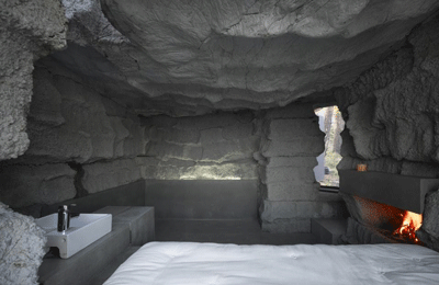 كامپوزیت بتن و سنگ صخره این خانه كاملاً به صورت ماهرانه تراش داده شده و به صورت كاملاً طبیعی فضای داخلی خانه نامبرده را پوشانده اند. وزن این خانه 300 كیلو بوده و هر یك از بخش های داخلی مربوط به نشیمن، غذاخوری و سرویس بهداشتی به صورت كاملاً مجزا و با استفاده از بتن های تراشیده شده طراحی شده اند.