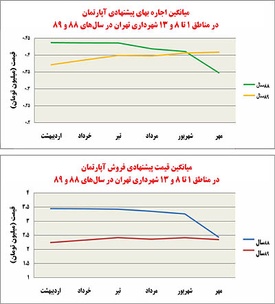 همچنين مقايسه نقطه به نقطه تغييرات قيمت پيشنهادي در ماههاي اخير حاكي از كاهش خفيف –كمتر از 5 درصد- نرخ در اوايل پاييز نسبت به اواسط تابستان امسال دارد.