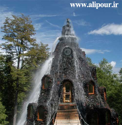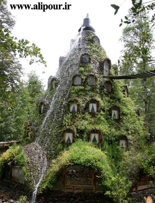 این هتل منحصر به فرد در جنوب شیلی به مانند یک آتشقشان زیبا با آبشاری یکپارچه ساخته شده است که مهمانان می توانند در رستوران این هتل غذاهای خوشمزه بخورند و از طبیعت زیبا لذت ببرند.