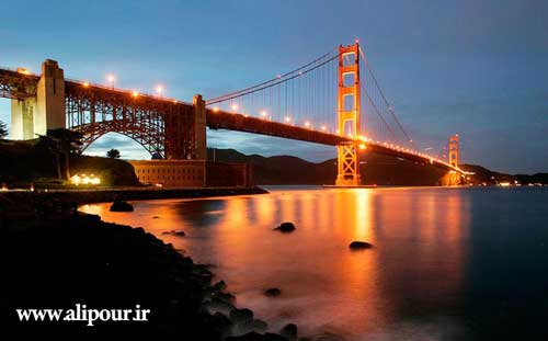 پل گلدن گیت (دروازه ی طلایی) پلی معلق در دهانه ی شمالی شبه جزیره ی سانفرانسیسکو و بر روی اقیانوس اطلس است که این شهر را به مارین کانتی متصل میکند. دهانه ی پل معلق گلدن گیت طولانی ترین دهانه در بین پل های سراسر جهان است و فاصله ی آن بیش از ۴۲۰۰ فوت میباشد.