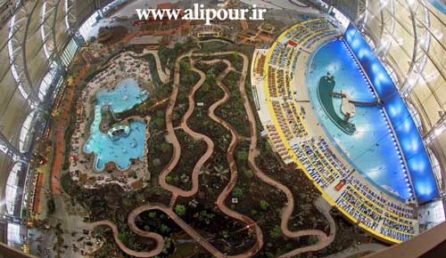 این تفریحگاه که مساحتش به اندازه 8 زمین فوتبال است با داشتن سرپوش میتواند حتی در زمستان هم پذیرای مسافرانش باشد. علاوه بر این ساحل جنگل های استوایی نیز در این تفریحگاه شبیه سازی شده است که با 50 هزار درخت تزئیین شده است.