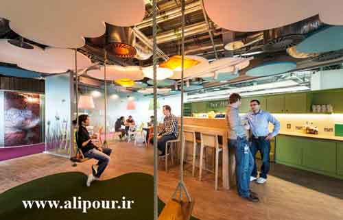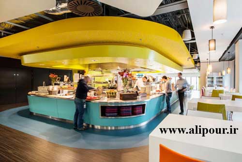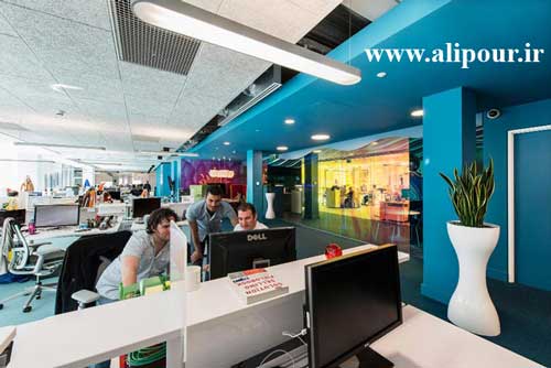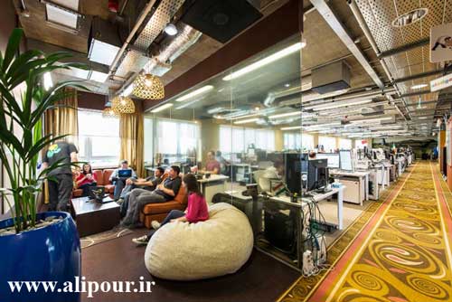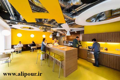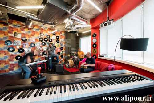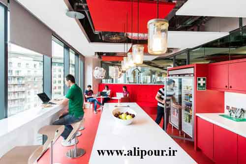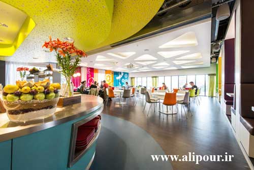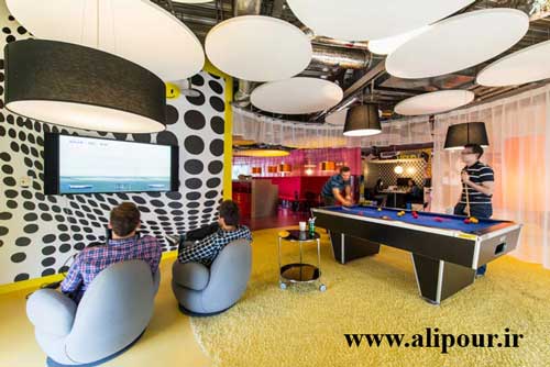 از فضاهای کاری رنگارنگ و همینطور مبلمان مدرن و استثنایی این آفیس که بگذریم امکانات متنوعی از قبیل ورزشگاه، تابلو های متحرک، وسایل سرگرمی، استخر شنا، بار، کافه تریا، مکان هایی الهام بخش برای استراحت نیز در نظر گرفته شده که در تقویت روحیه کارکنان سهم بسزایی دارد.