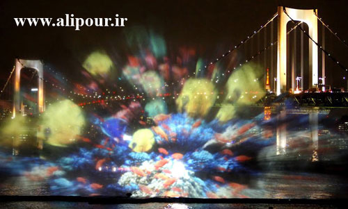 هنرنمایی با استفاده از نور و آب در توکیو
