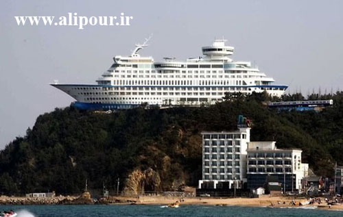اخیرا یک هتل بسیار لوکس و زیبا در کره جنوبی ساخته شده که کاملا شبیه به یک کشتی بزرگ است. بار ها تلاش معماران برای ساخت هتل هایی شبیه به کشتی را شاهد بودیم ولی به جرات میتوان گفت این بار معماران کره ای موفق به انجام این کار به بهترین صورت شده اند. زیرا اگر کسی نداند واقعا تصور میکند که یک کشتی در بالای کوه گیر افتاده است. تصاویری از این هتل بی نظیر و 5 ستاره را مشاهده خواهید کرد.
