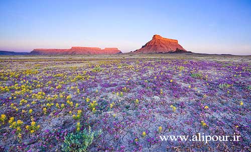 در فصل بهار، زمانی که رطوبت در این منطقه افزایش می یابد گل های رنگارنگ در این بیابان های خشک شکوفه زده و به سرعت تکثیر می شوند. چون حفظ رطوبت بسیار کوتاه مدت است دیدن این گل های رنگارنگ پدیده ای نادر و کمیاب محسوب می شود.