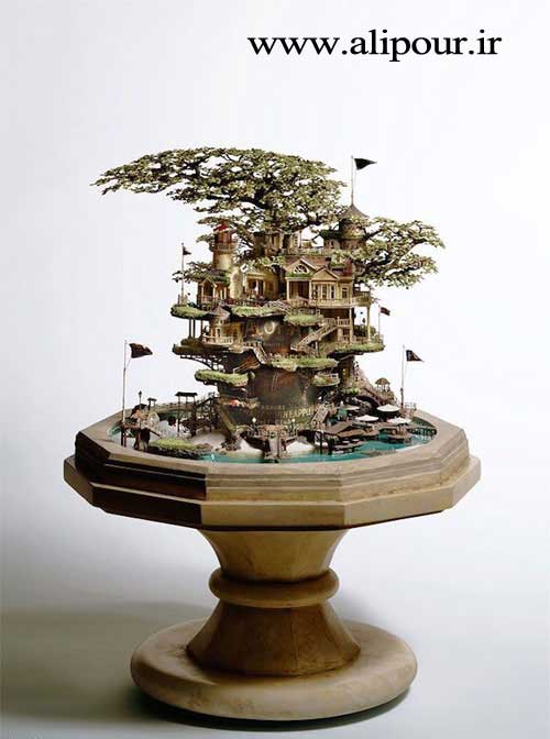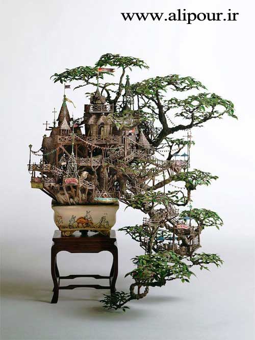 هنرمند ژاپنی Takanori Aibaخالق این معماری های مینیاتوری است. او با استفاده از درختان بونسای شهر ها و قلعه هایی کوچک و زیبا را در اطراف این درختان ساخته و آثاری رویایی و زیبا را خلق کرده است.