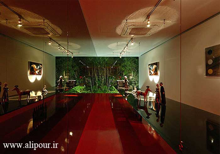 در معماری گالری از آینه ها استفاده شده تا سکوت و آرامش موجود در جنگل اطراف به داخل ساختمان هم منتقل شود. به این ترتیب همراه با تغییر فصل ها و تغییر کارهای گالری، نمای ساختمان هم تغییر می کند و همگون با طبیعت می شود. در بین نمای آینه ای، راه پله با رنگ مشکی و قرمز قرار داده شده که به طبقه دوم راه دارد. در طبقه اول هم مسیری برای گالری اصلی و قسمت اضافه شده، طراحی کردند.